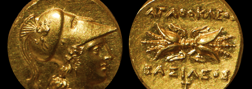 Depuis le début du 5° Siècle, Syracuse est dirigée par des tyrans, des dirigeants autoritaires, contrairement à l’idéal démocratique grec. Agathocle a commencé sa carrière d’officier militaire en tant que partisan de la faction démocratique. D’origine modeste, il aime à se présenter comme un homme du peuple. Cependant, après avoir pris le pouvoir par un coup d’Etat en 317, il s’avère être encore plus tyrannique que ses prédécesseurs. Surtout, il mène une politique militaire très agressive : il ambitionne de suivre le modèle d’Alexandre le Grand en devenant le nouveau protecteur du monde grec contre les « barbares » – en l’occurrence, les Carthaginois.