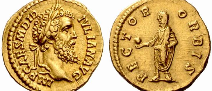 Didius Julianus était un riche aristocrate romain, qui, après le meurtre de l’Empereur Pertinax, a acheté le trône impérial en promettant 25 000 sesterces à tous les soldats de la garde prétorienne. Sa proclamation comme Empereur a provoqué un soulèvement de l’armée, choquée de voir le trône vendu aux enchères. Didius Julianus n’a régné que quelques mois, avant d’être tué par Septime Sévère.