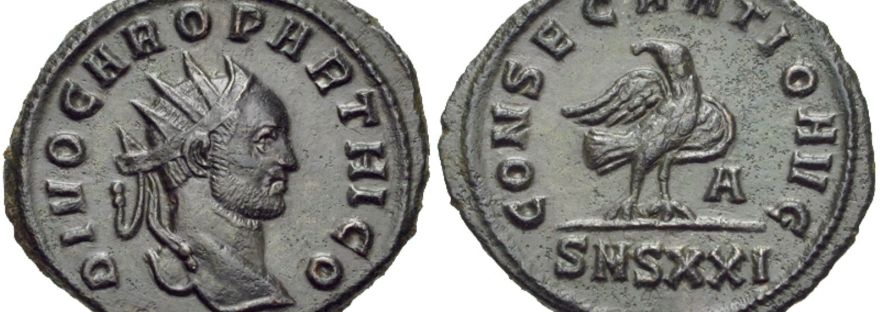 En 293, l’Empereur Dioclétien réforme profondément l’administration impériale. L’Empire est divisé, avec pour Empereurs Dioclétien en Orient et Maximien en Occident. Chacun des deux Empereurs est secondé par un César (Empereur auxiliaire), destiné à lui succéder. Cette Tétrarchie (pouvoir de quatre hommes) est destinée à augmenter la capacité d’action du pouvoir. Dioclétien veut aussi abolir la succession héréditaire, en faveur du choix des meilleurs.