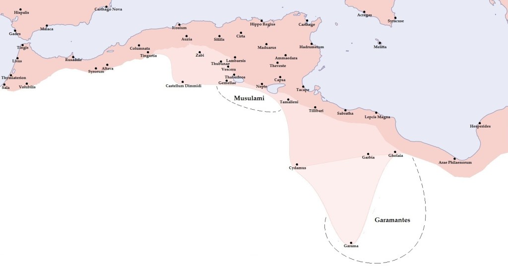 Après le 3° Siècle, l’Empire romain ne contrôle plus que les villes côtières d’Afrique du Nord, tandis que les tribus amazighes de l’intérieur jouissent d’une large autonomie, tout en reconnaissant symboliquement la souveraineté de l’Empereur romain.