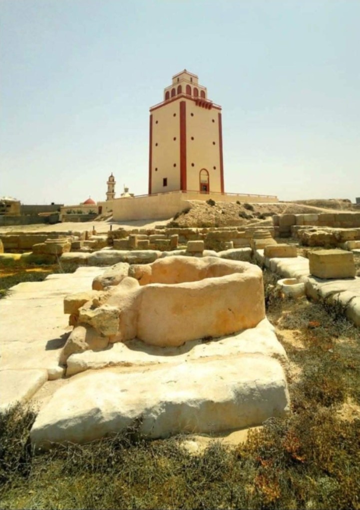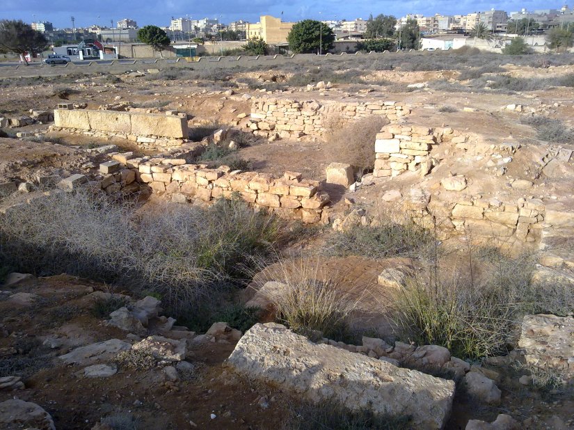 Ruines de Bérénice. En arrière-plan : phare de Benghazi